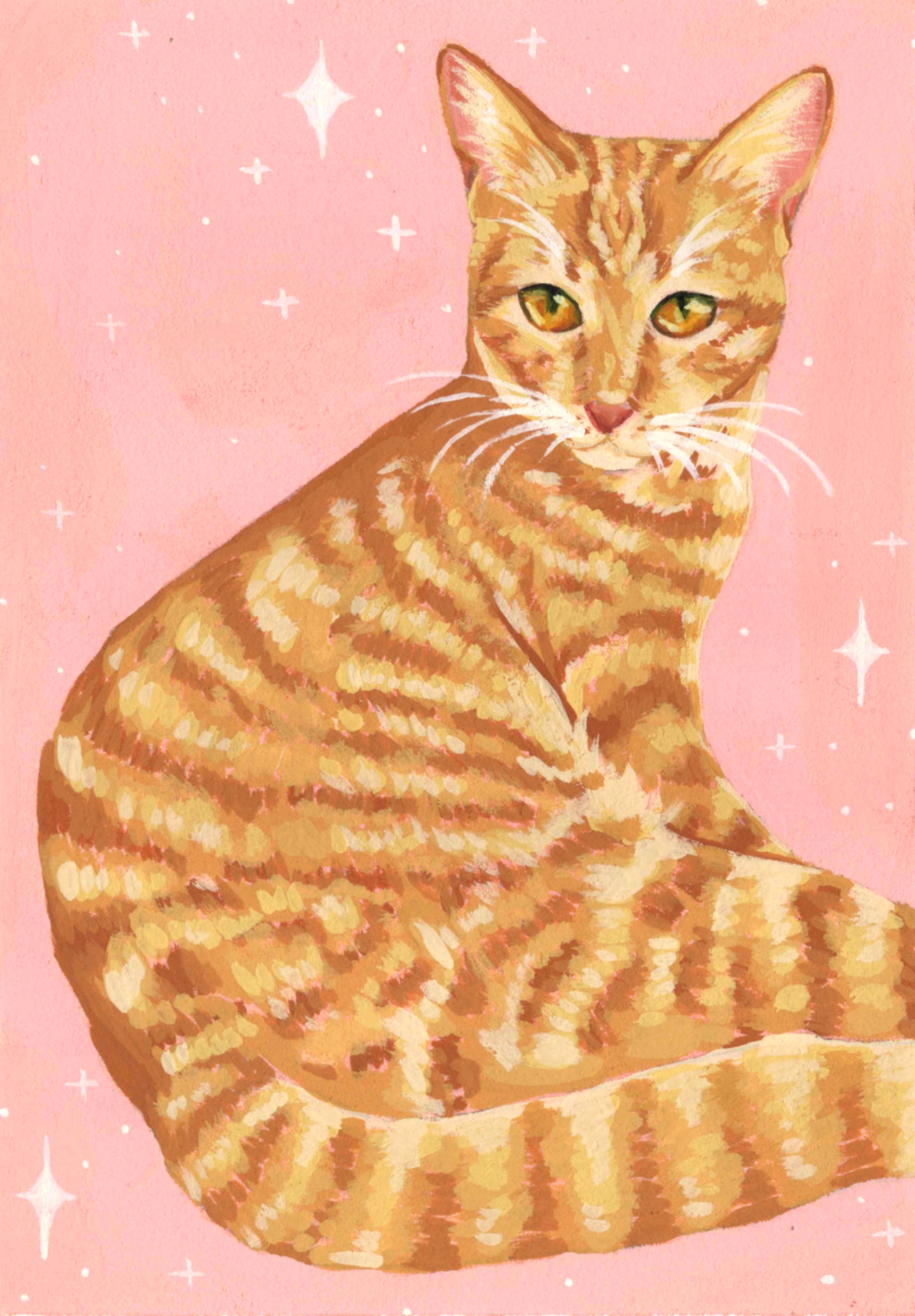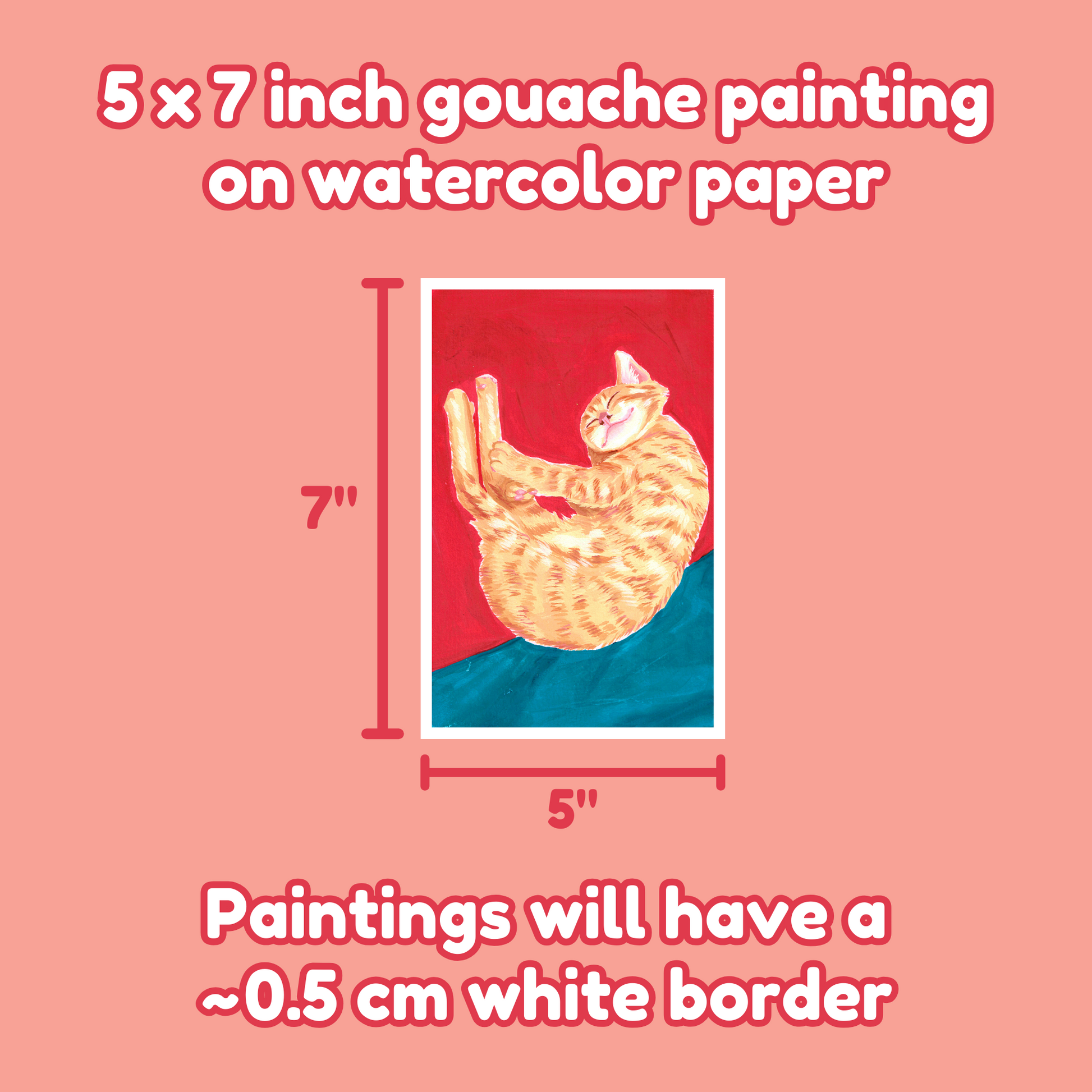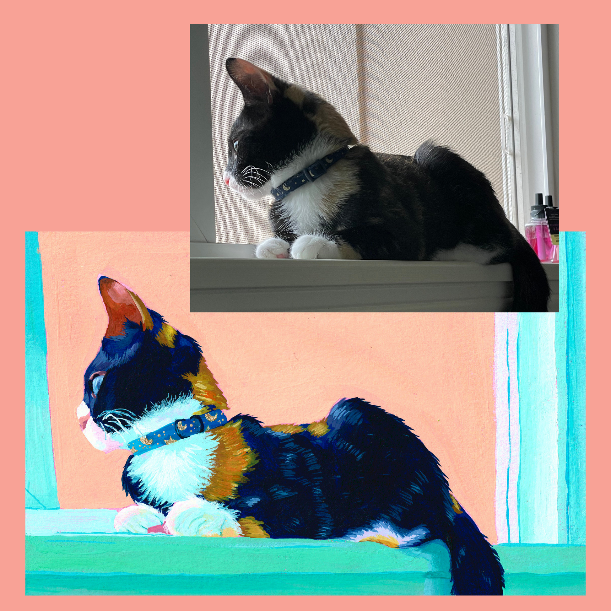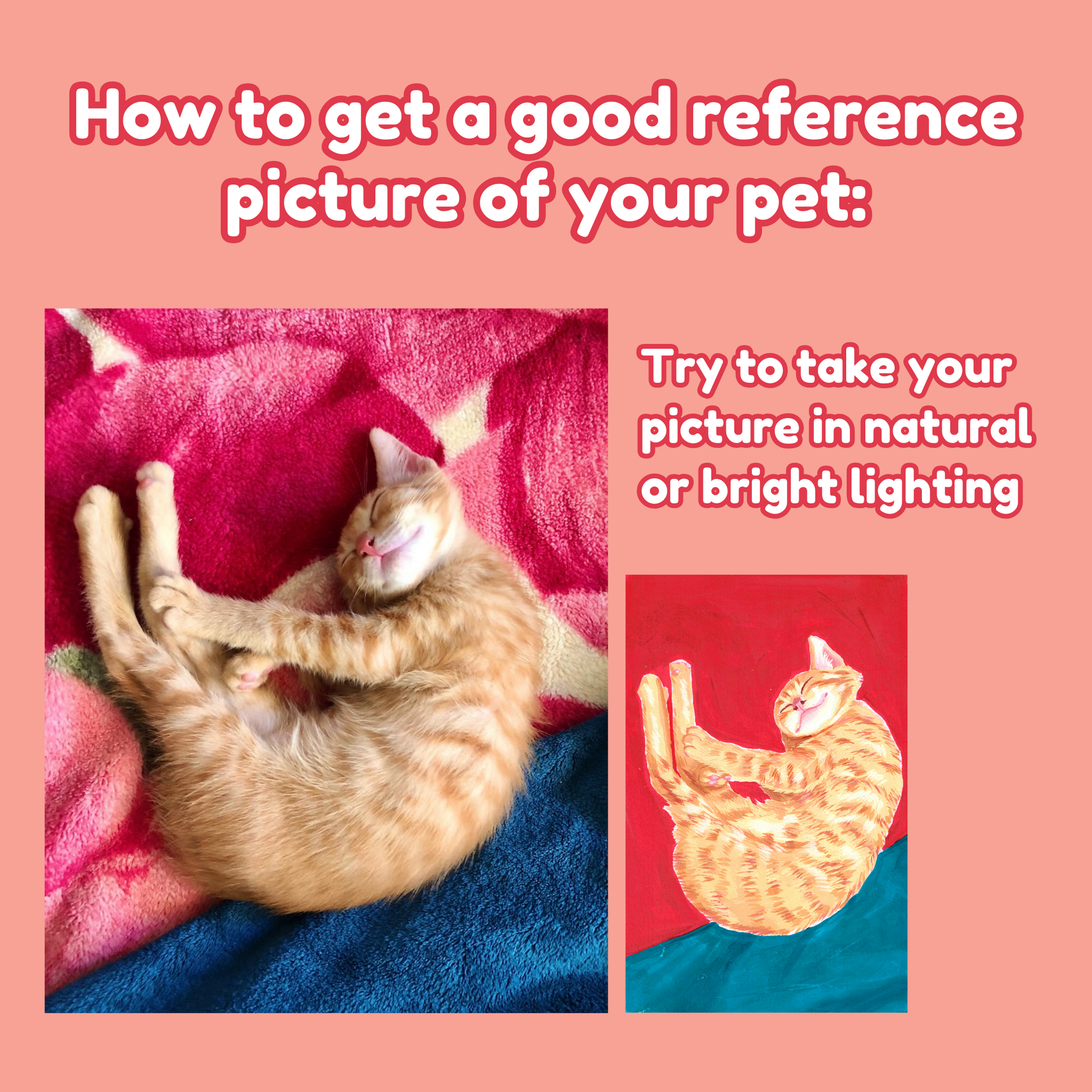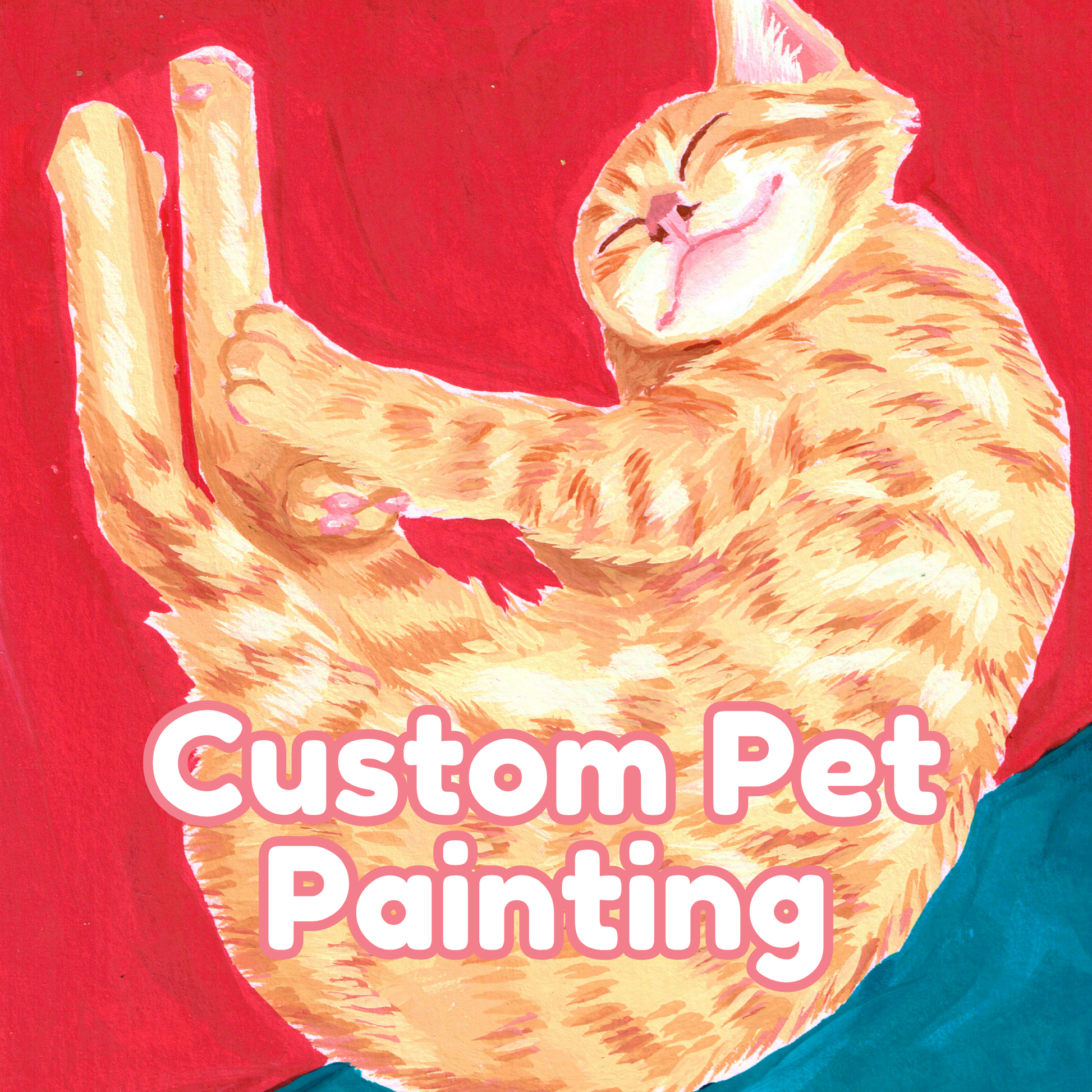 Custom pet gouache painting on 5 x 7 inch watercolor paper with ~0.5 cm white border. Please include at least 1 reference image of your pet. Multiple pictures are appreciated. Think about the way your reference photo's angle and cropping will translate in the painting. If your pet's picture only displays half of their body, that's what will be painted. Natural lighting or bright lighting is best for reference pictures.
