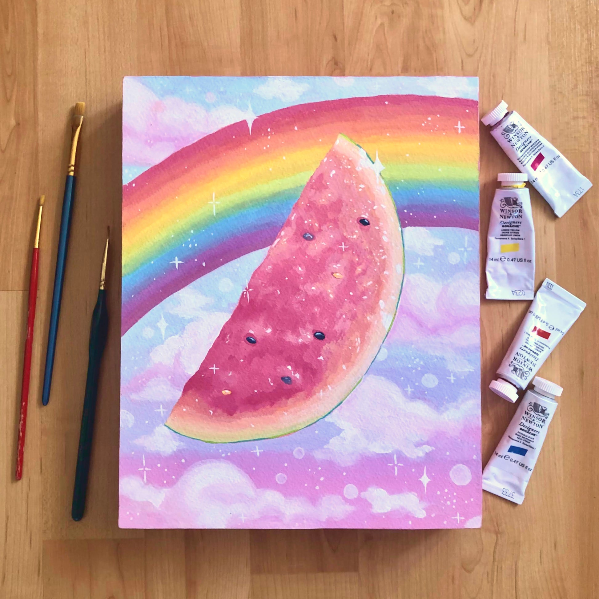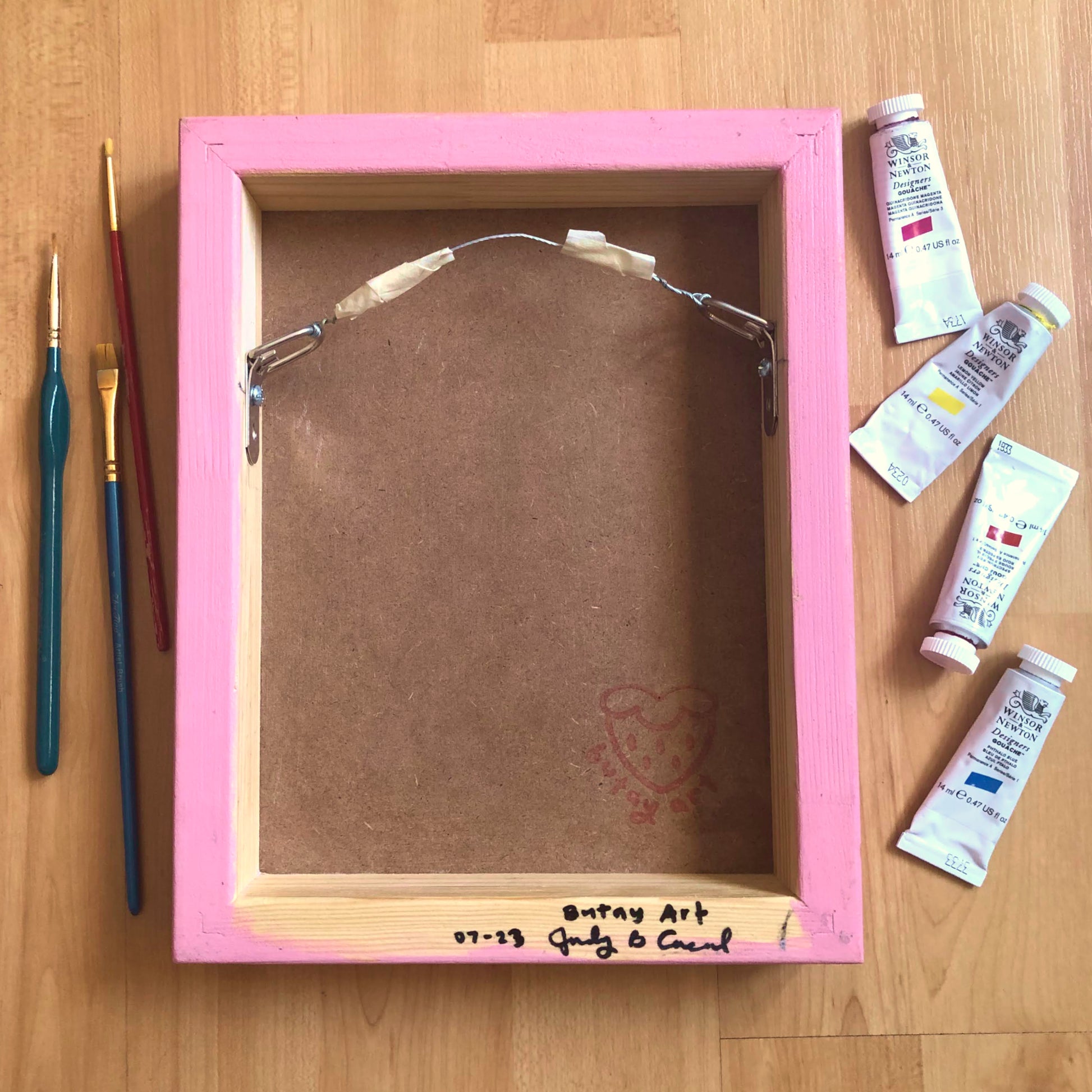 - One original hand-painted gouache painting on watercolor paper mounted on wooden panel
