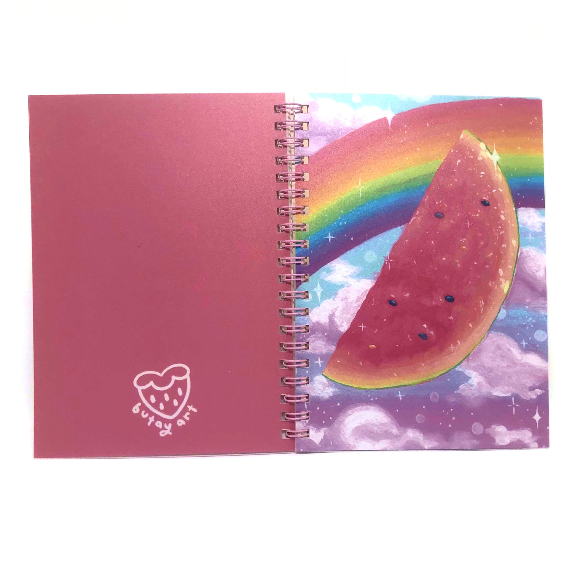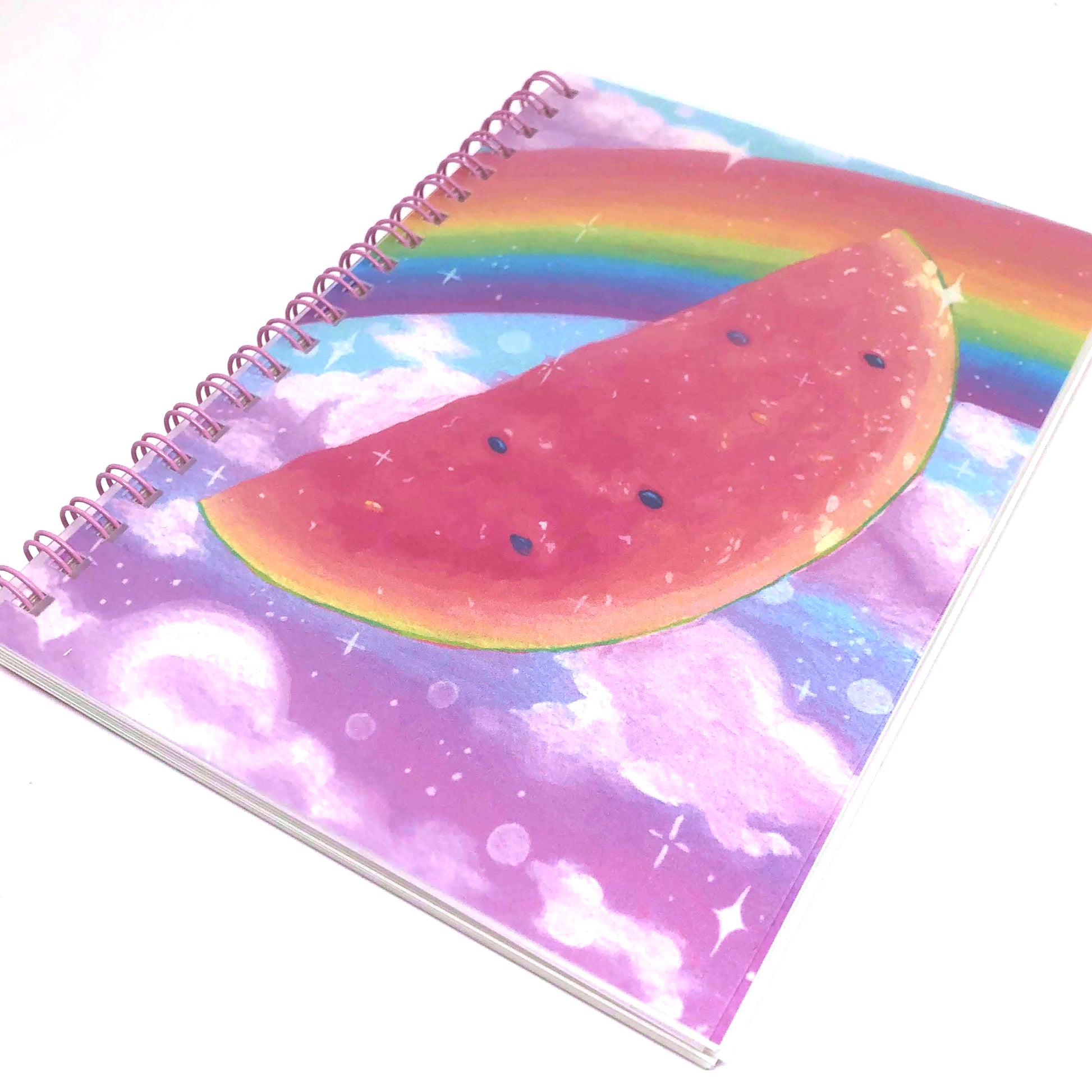 - Design features a watermelon against a dreamy cloudy background with a rainbow.