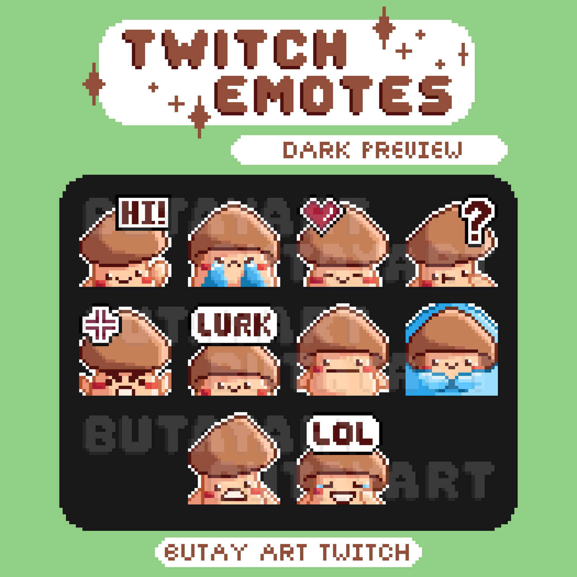 - 10 emotes in 3 sizes (emote sizes - 28px, 56px, 112px)