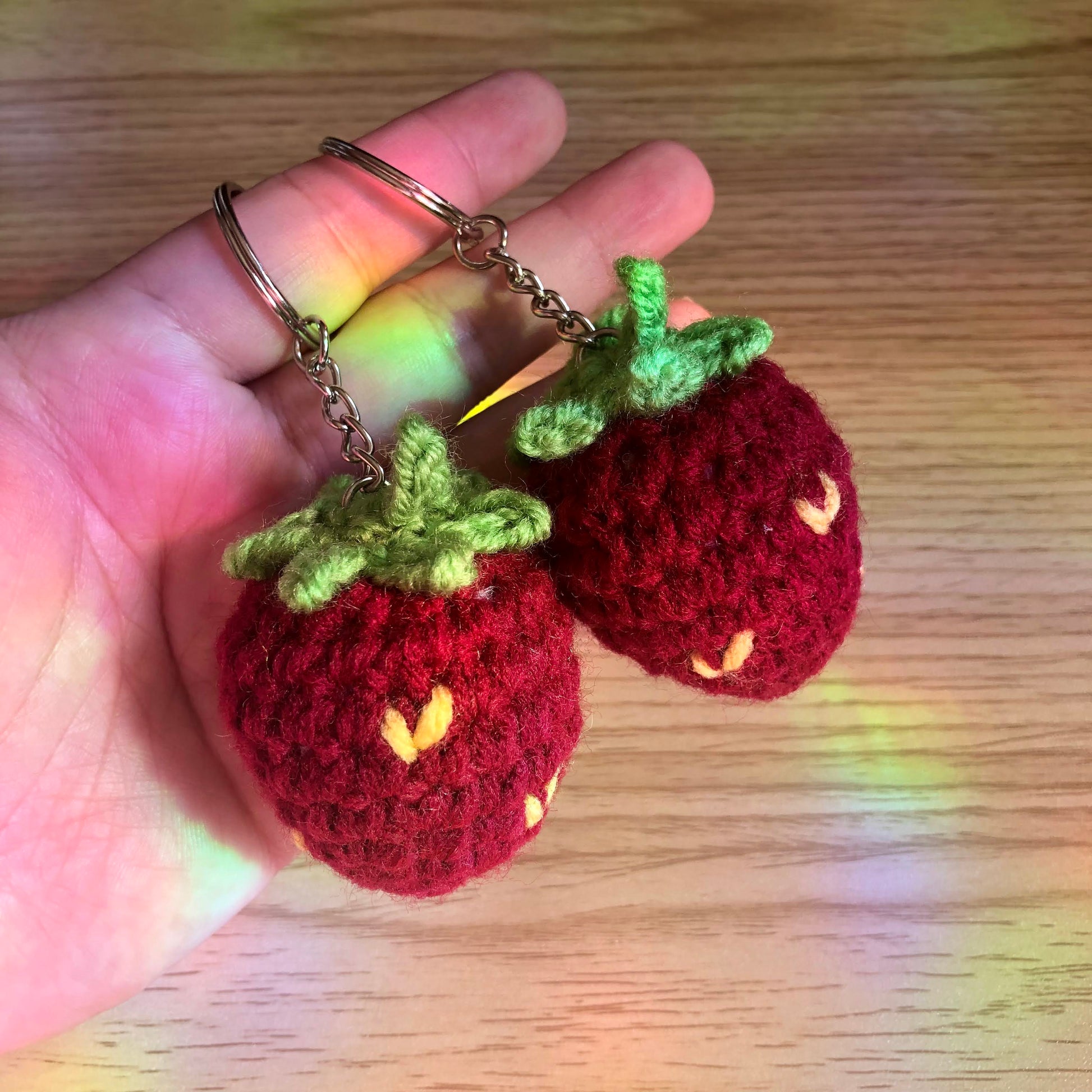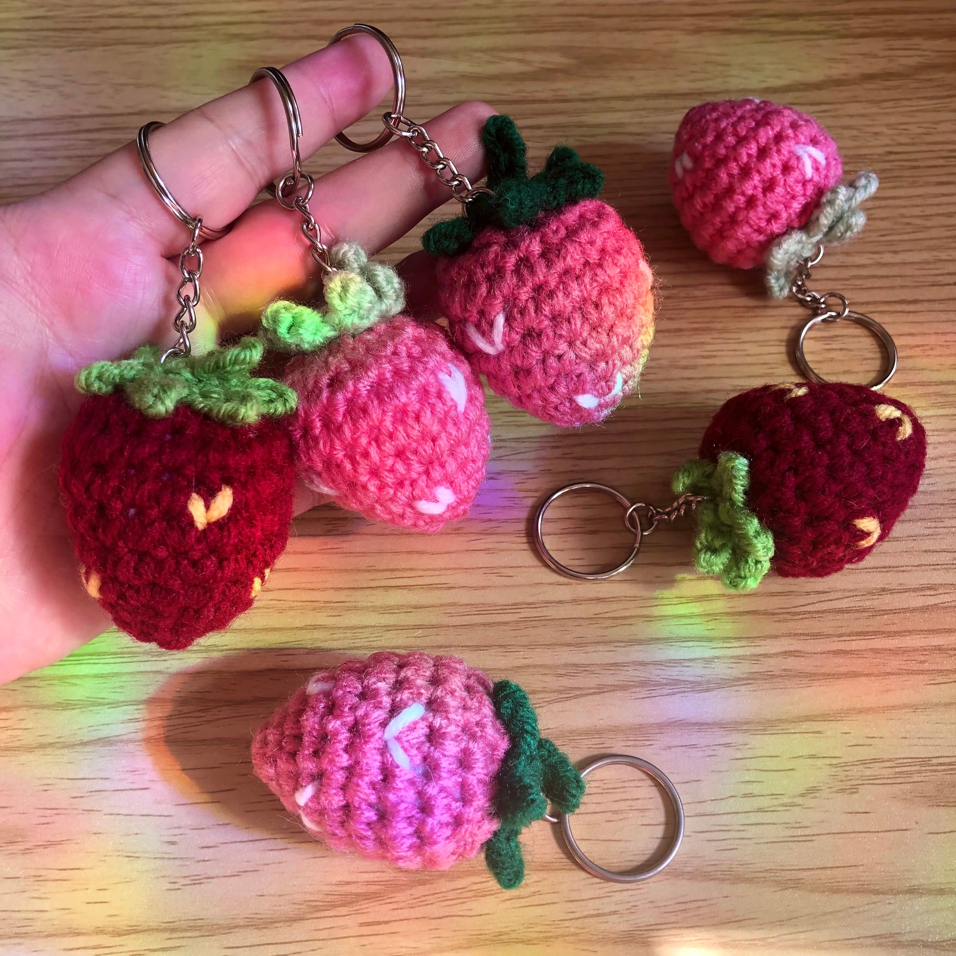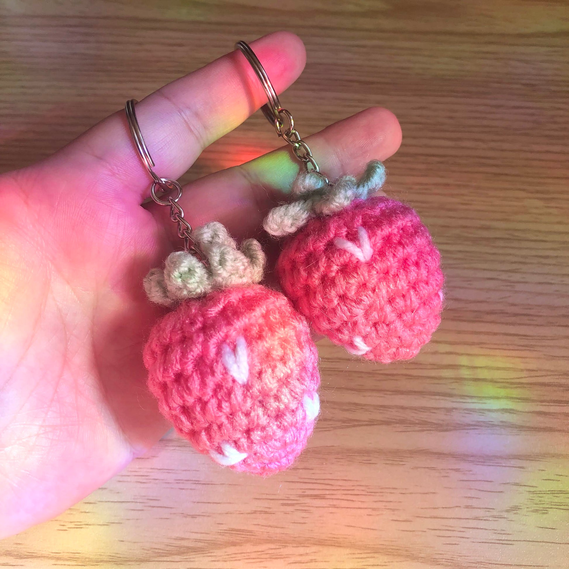 - One strawberry crochet keychain